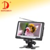 7inch lcd monitor with tv/in car monitor with tv/tft lcd tv 1.Input of audio frequency and video frequency as display and monitor 2.Analog TV. 3.USB SD/MMC Card reader(this function can be optical) 4.Support of maximum 720*576P resolution 5.Built-in stereo loudspeaker 6.Full-functional infrared control.7-inch screen and 7 buttons for the host(MENU,CH-,CH+,VOL-,VOL+,IR for TV/AT,POWER) with simpleand convenient operation 7.Multilanguage OSD 8.External direct current power(12V 1.5A) list of accessories quantity Alternating Current Power Adaptor 1 Remote Controller 1 Audio and Video Frequency Line1 Trestle 1 Telescopic Antenna1 Instruction1 Warranty Card1 Certificate1